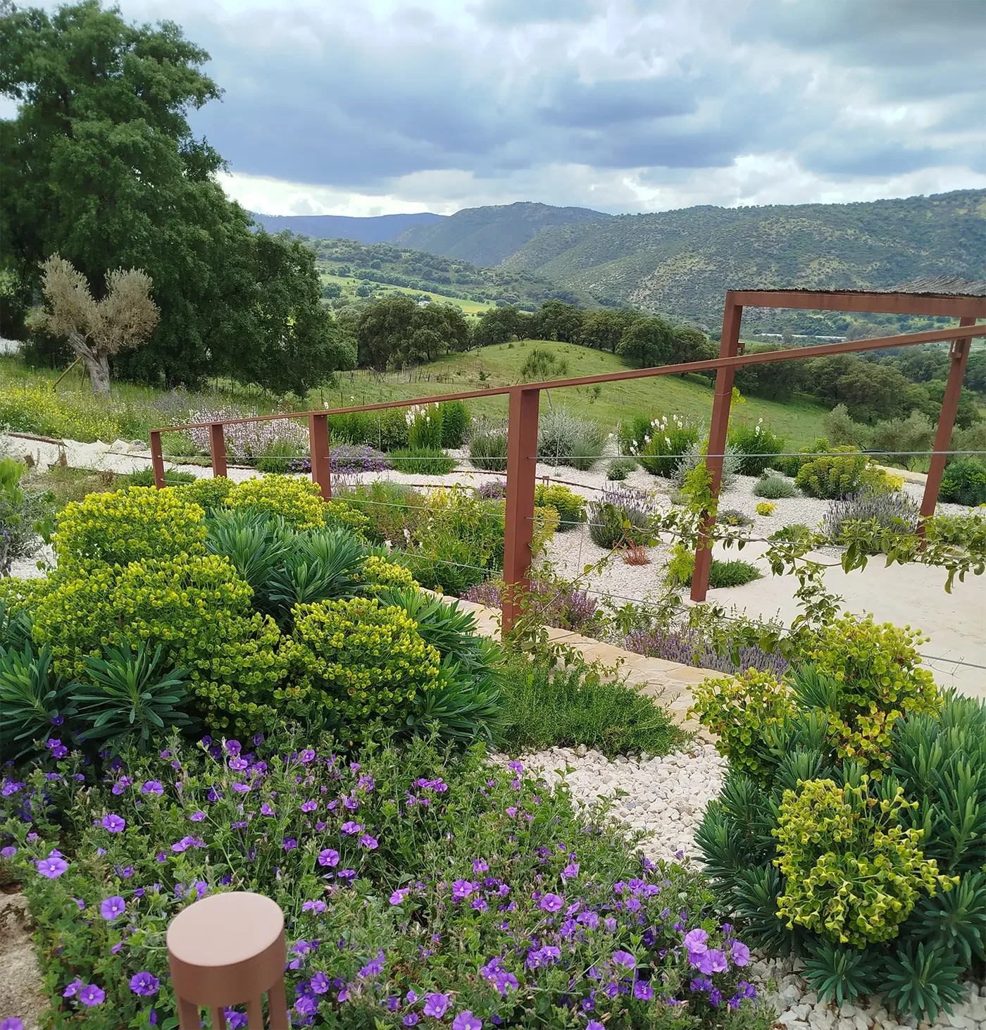 This garden, nestled in the stunning Guadiaro Valley, showcases Mediterranean planting that thrives with minimal water, capturing the natural beauty of the region while embracing sustainability.